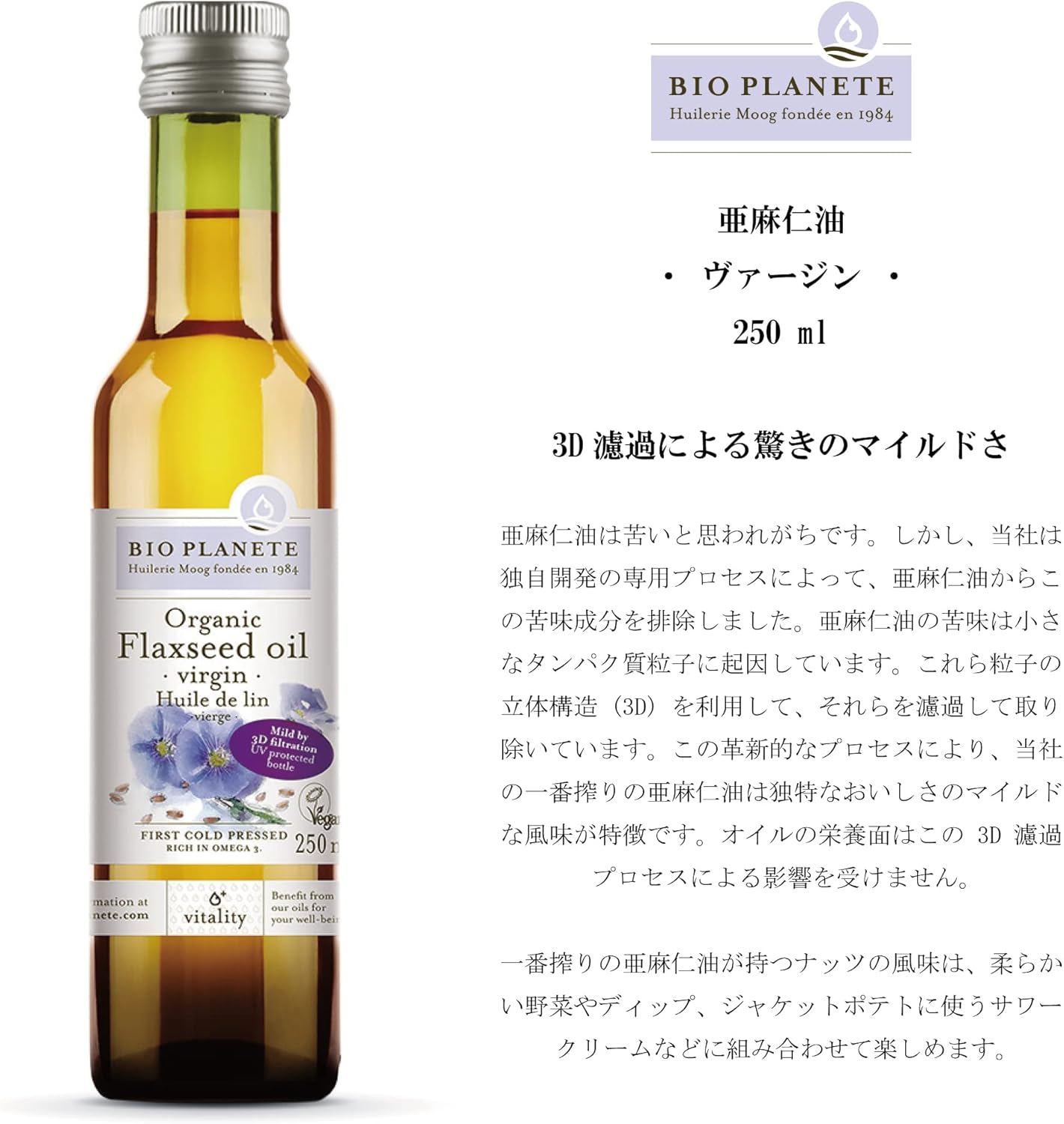 有機アマニオイル (フランス製、有機JAS認証、無添加、コールドプレス低温圧搾、オメガ3・6、αリノレン酸、なめらか)