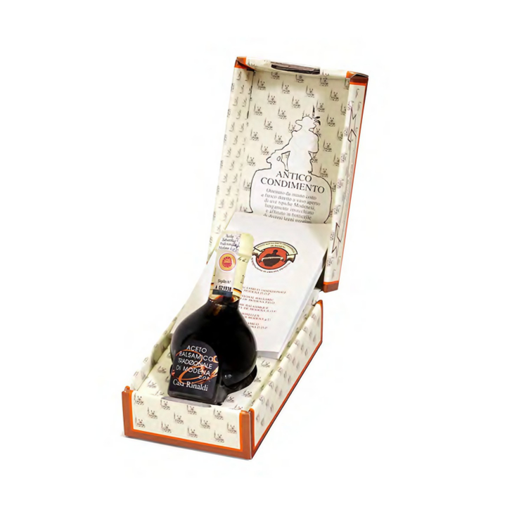 モデナの伝統的な製法で作られた専用バルサミコ樽で12年の歳月をかけて長期熟成発行させたイタリア最高峰のバルサミコ酢。色合い、深みのあるとろみ、鼻腔をくすぐる甘さ、深い味わいの究極のバルサミコ酢。ジビエやシャトーブリアン等の赤身肉、黒マグロや真鯛等の魚料理、ハード・ウオッシュタイプのチーズ、バニラのジェラート等に合います